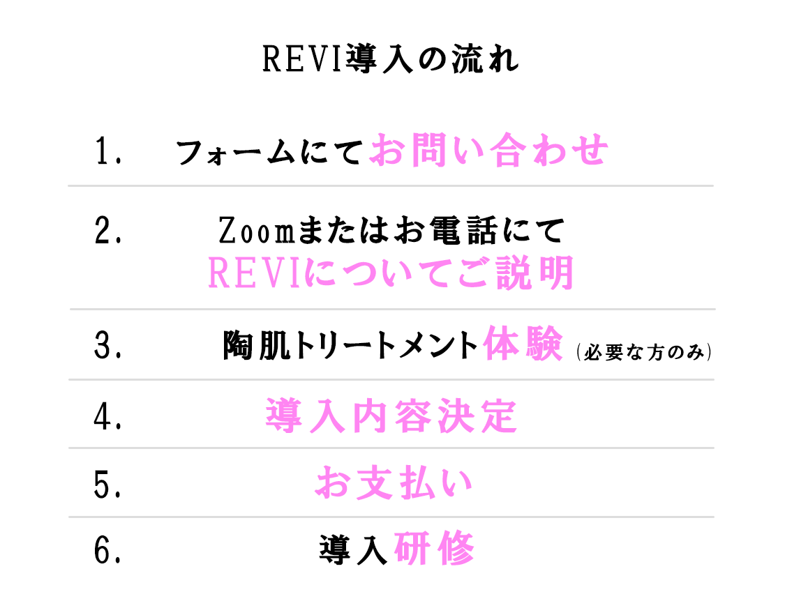 REVI陶肌トリートメントを導入されたサロンでは、施術やホームケア商品の購入を目的としたお客様が次々に増えています。それは“他ではこの肌が手に入らない”ことをお客様が体感されているからです。 REVIは人が集まるサロンに貢献します。